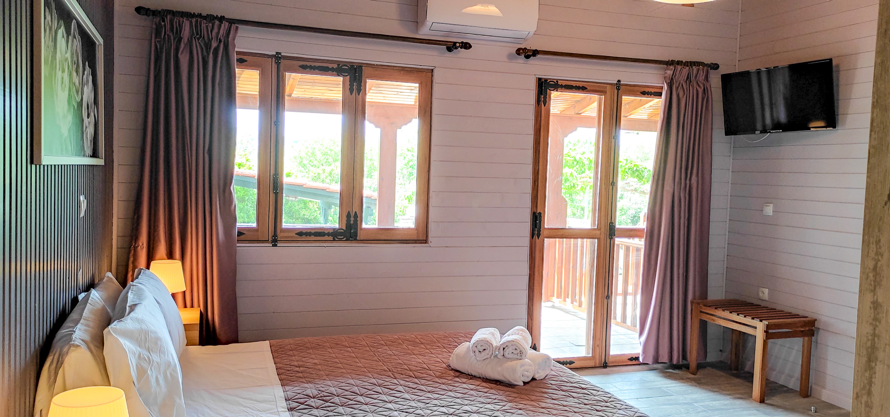 Spacious & elegant single room apartment with individual Bathroom & small kitchen. Private balcony/porch to relax outside. All 3 apartments share the front yard and barbeque place (firnitured). Even our "small" apartment has plenty of space for 2 people and a baby cot (not provided).