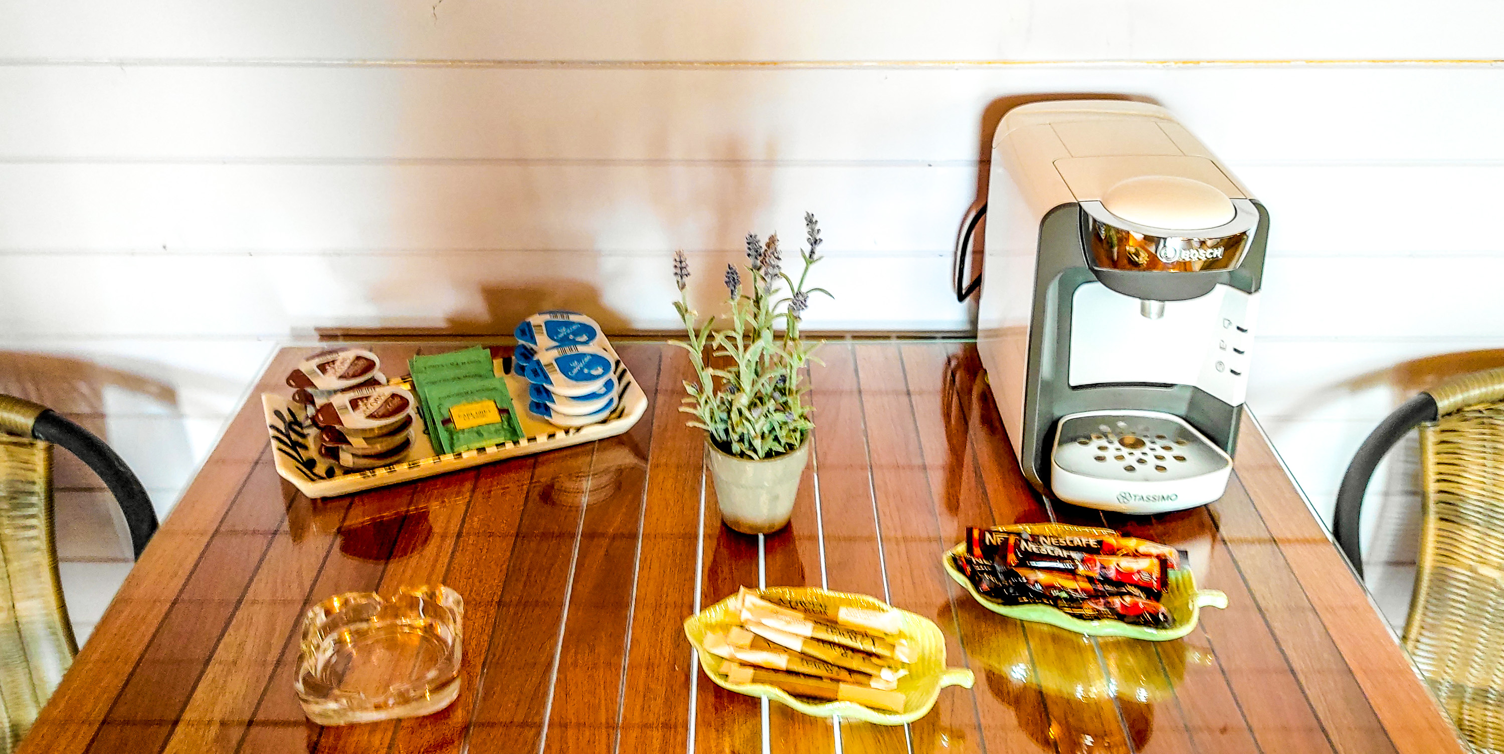 Provided with capsules for espresso / nescafe / tea & sugar for your convenience