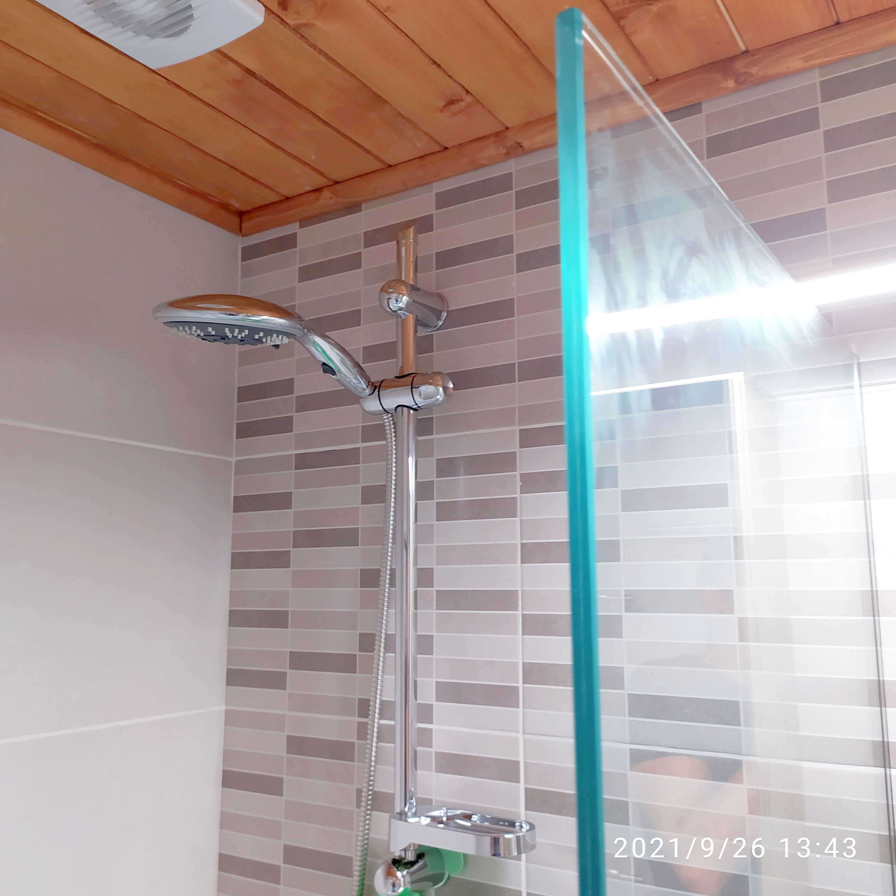 With hot water & Towels (housekeeping once a week). Shampoo, hair conditioner and shower gel provided