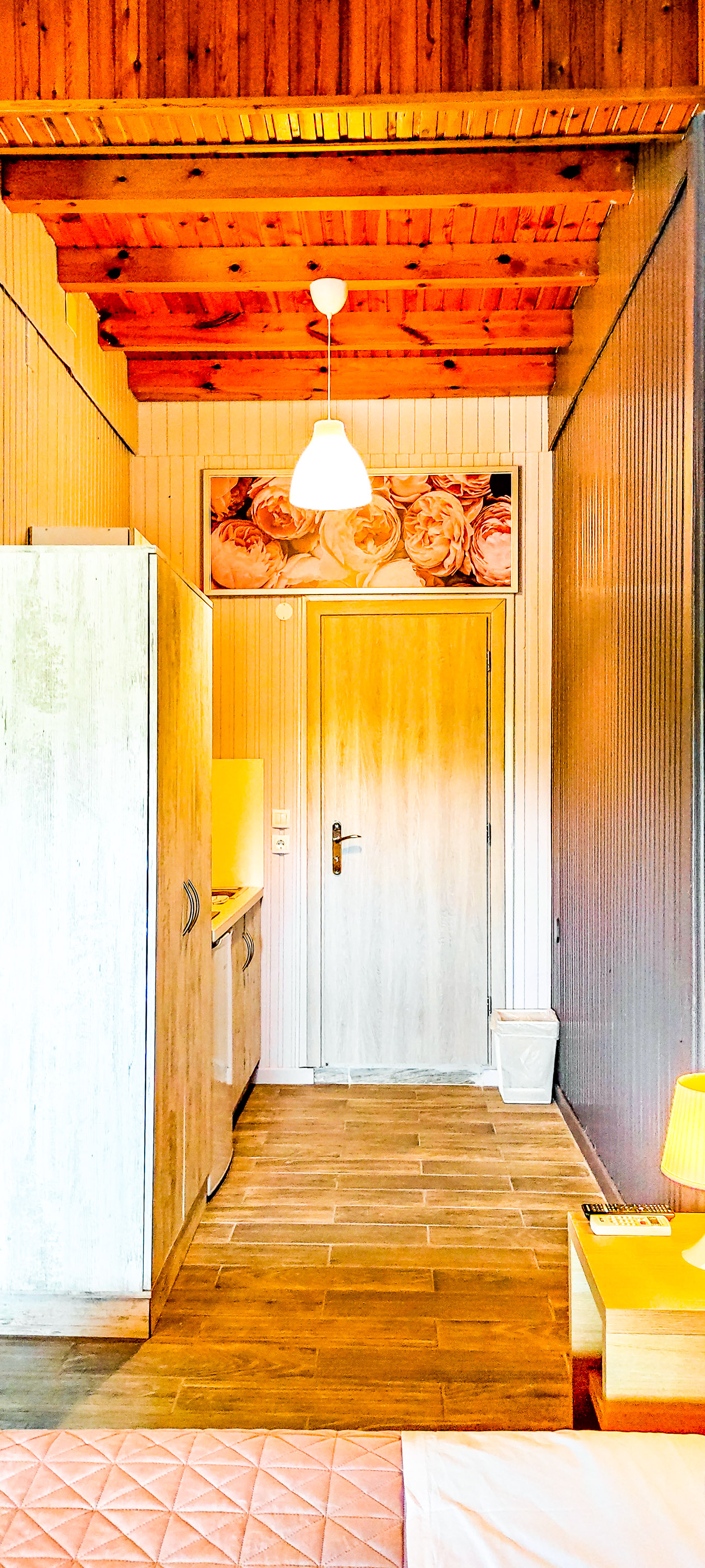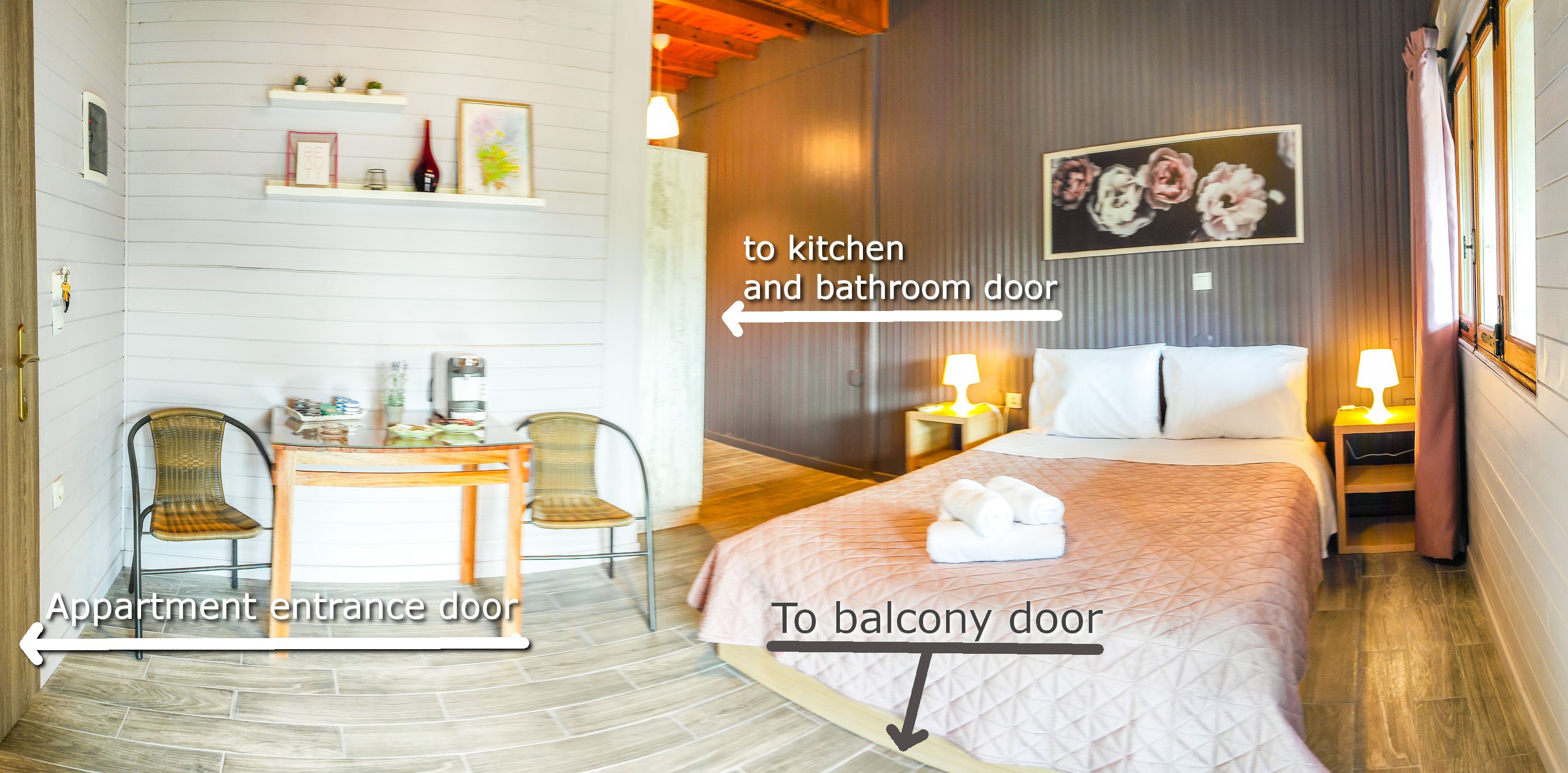 Spacious & elegant single room apartment with individual Bathroom & small kitchen. Private balcony/porch to relax outside. All 3 apartments share the front yard and barbeque place (firnitured). Even our "small" apartment has plenty of space for 2 people and a baby cot (not provided).